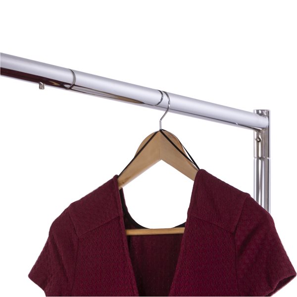 Ideal for use in showrooms and warehouses. Will nest together when not in use. Knocked-down construction - Z base comes in 3 parts that bolt together. Hangrail & Uprights are made of 1-1/4" round tubing. The hangrail measures 60 1/2" long. 4" industrial casters. Lower shipping costs